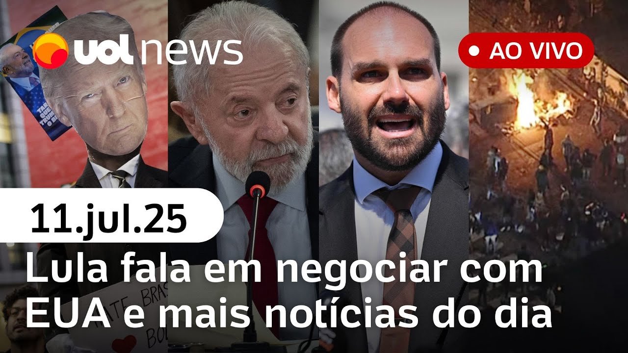 No UOL News 1ª Edição desta sexta: presidente Lula publica artigo contra tarifas dos Estados Unidos em nove países; oposição bate cabeça sobre “culpado” por tarifaço de Donald Trump; ex-presidente Jair Bolsonaro faz novos elogios ao norte-americano; impactos econômicos das taxas dos EUA no Brasil; ação policial em Paraisópolis, na capital paulista, e mais notícias do dia com análises de Josias de Souza e Mariana Sanches.